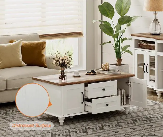 Great Texture FinishThe coffee table with storage is an imitation of distressed surfaces for a more expensive and textured look. And the distance between the bottom plate and the floor is large enough so that the robot vacuum cleaner can pass freely.
