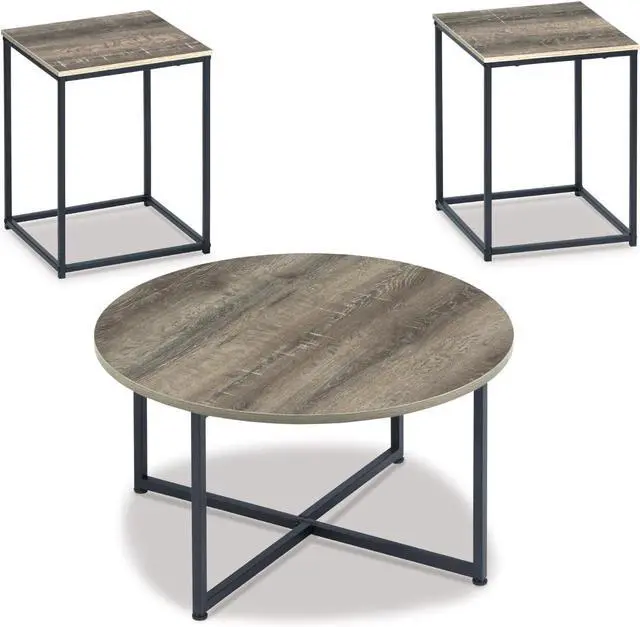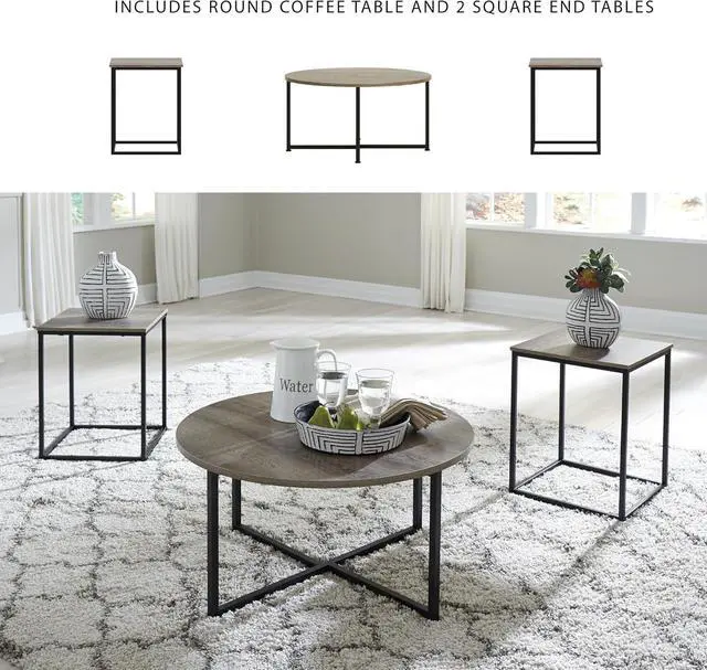 SET OF 3: Center coffee table measures 31.5 " W x 31.5 " D x 16.25 " H and the 2 end tables each measure 15.75 " W x 15.75 " D x 19.75 " H