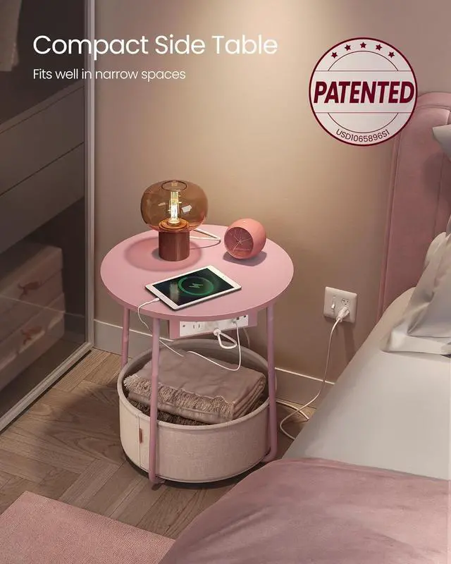 [Easy Assembly] With its intuitive design, clear instructions, and numbered parts, this side table with charging station can be set up in just 10-15 minutes. Patented Design, No. USD1065896S1