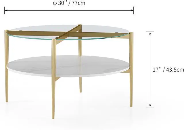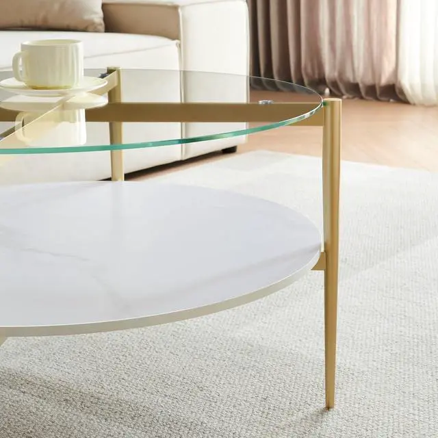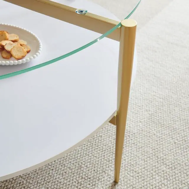 Design and StyleElevate your living space with our exquisite round coffee table. Its sleek design combines modern aesthetics with timeless elegance, making it the perfect centerpiece for any room. Crafted with a luxurious gold metal frame and a clear tempered glass top, this table exudes sophistication and refinement.