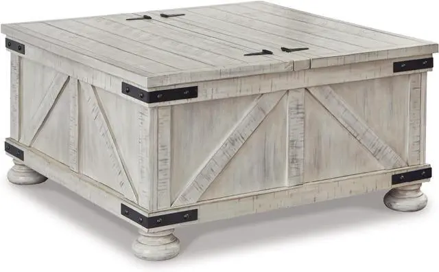 COFFEE TABLE: Bring home rustic farmhouse style with this cocktail table in a whitewash finish. Generously scaled, it' s a great living room companion