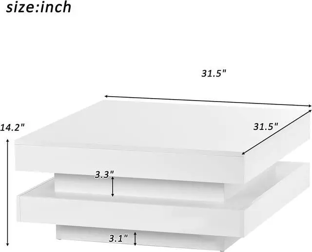 [Easy to Assemble Coffee Tables] - This square coffee table is 31.5W x 31.5D x 14.2H. The modern coffee table is made of high quality MDF board with a high-gloss finish, which is sturdy, durable, waterproof and proof-corrosion. It is ideal for living room table furniture. This product needs full installation, if there are any questions you are welcome to contact us, we will actively solve it for you.