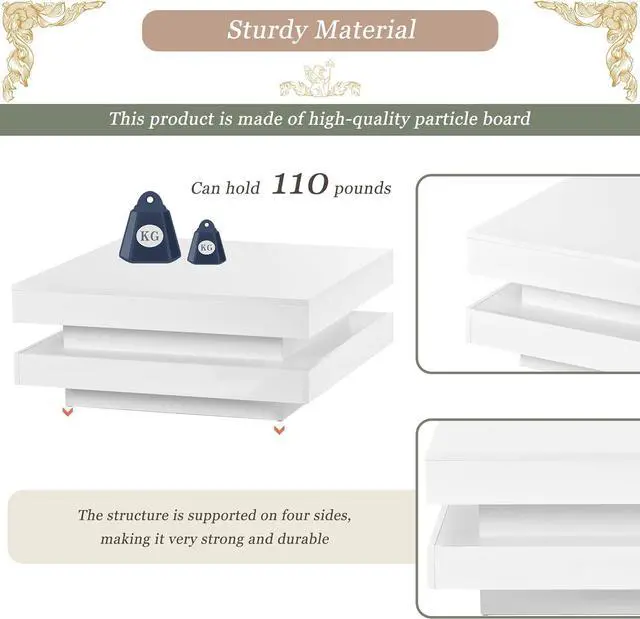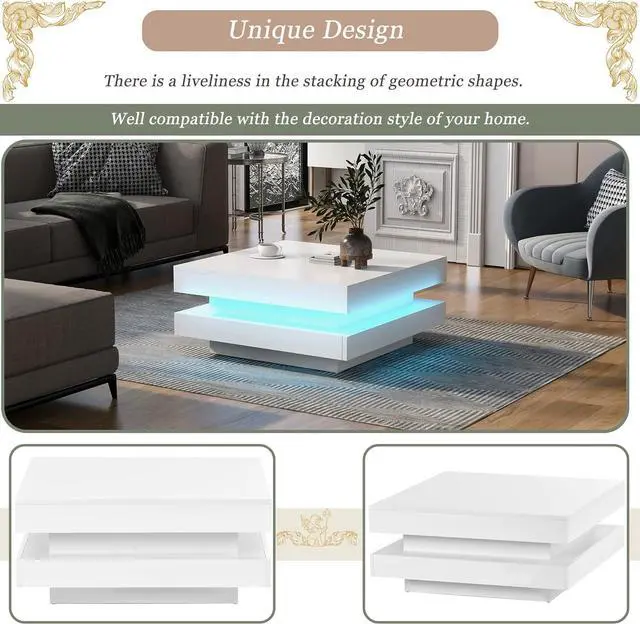 [Easy to Clean and Storage] - The surface is UV high-gloss coated, waterproof and easy to clean. The bottom is equipped with scratch-resistant plastic feet. Double-layer storage, with a width of 3.9 inches on the four sides of the lower layer, which can store some small objects. The low-key square tabletop reveals the owner' s style and charm.