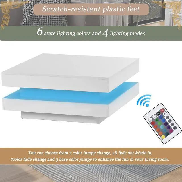 [Modern Coffee Table with LED Lights] - As an impressed functional furniture in house, it has 16 state lighting colors and 4 lighting modes. You can choose from 7 color jumpy change, all fade out &fade in, 7color fade change and 3 base color jumpy to enhance the fun in your Living room.