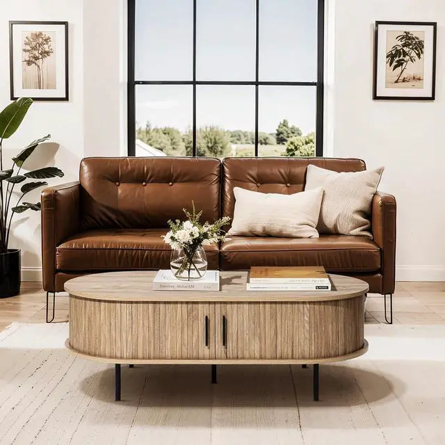 Mid Century Modern Design: Our oval coffee table with storage combine vintage charm with modern functionality. The perfect addition to any home, this modern coffee tables for living room is both functional and stylish.