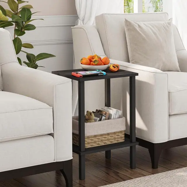 • [2-tier Storage] Our end table is solid and stable enough when being placed bottle, lamp, book and magazine. Space-saving and lightweight design, easy to move and carry.
