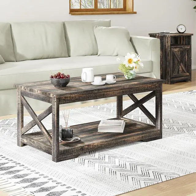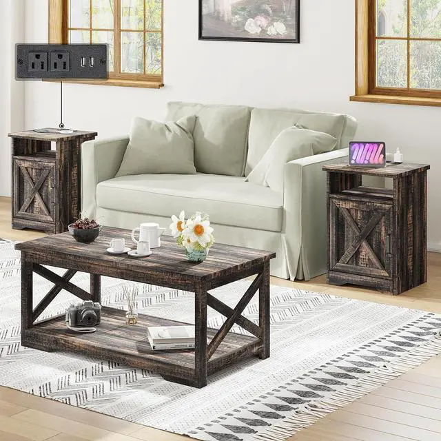 Barn Door Design: X-shaped design barndoor-inspired 1 coffee table and 2 end tables are the perfect addition to living room, instantly giving a perfect design mix of rustic farmhouse.