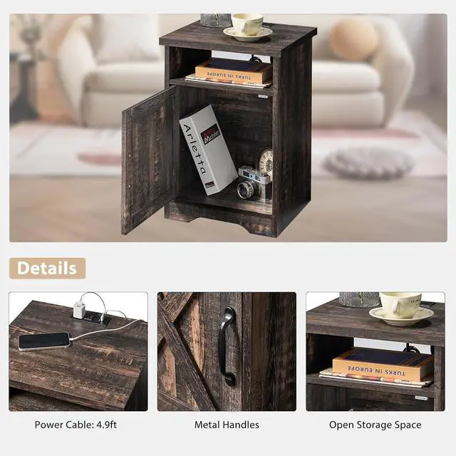 Ports for Multi-Charging: 2 standard outlets and 2 USB ports has ETL-certified and easy to charge your phone, table, and even your laptop. 4.9 ft extension cord can move this end table freely.