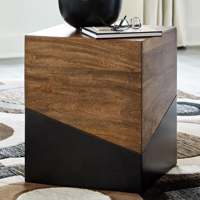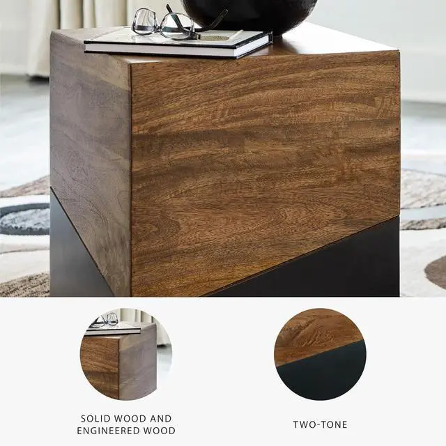 BEAUTIFULLY CRAFTED: Constructed of solid wood and engineered wood with a two-tone light brown and dark gray finish offering a unique conversation piece as a bedside table or living room decor