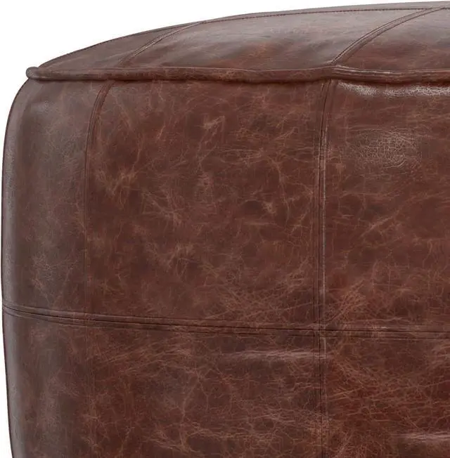 Upholstered with 100% top-grain, distressed brown semi aniline-dyed genuine buffalo leather