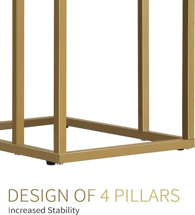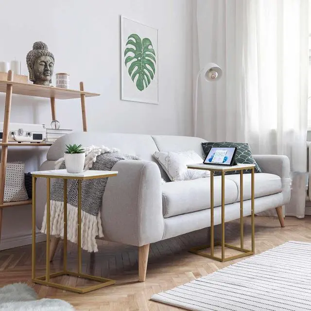 [Strong & Stable] The sturdy gold metal frame ensures the stability of this sofa side tables, preventing it from shaking. Its solid enough to support 25 lbs. The 4-leg support system adds extra stability while maintaining a minimalist style. Four adjustable feet will keep this c shaped couch table balanced on slightly uneven ground, and prevent the floor from scratching.