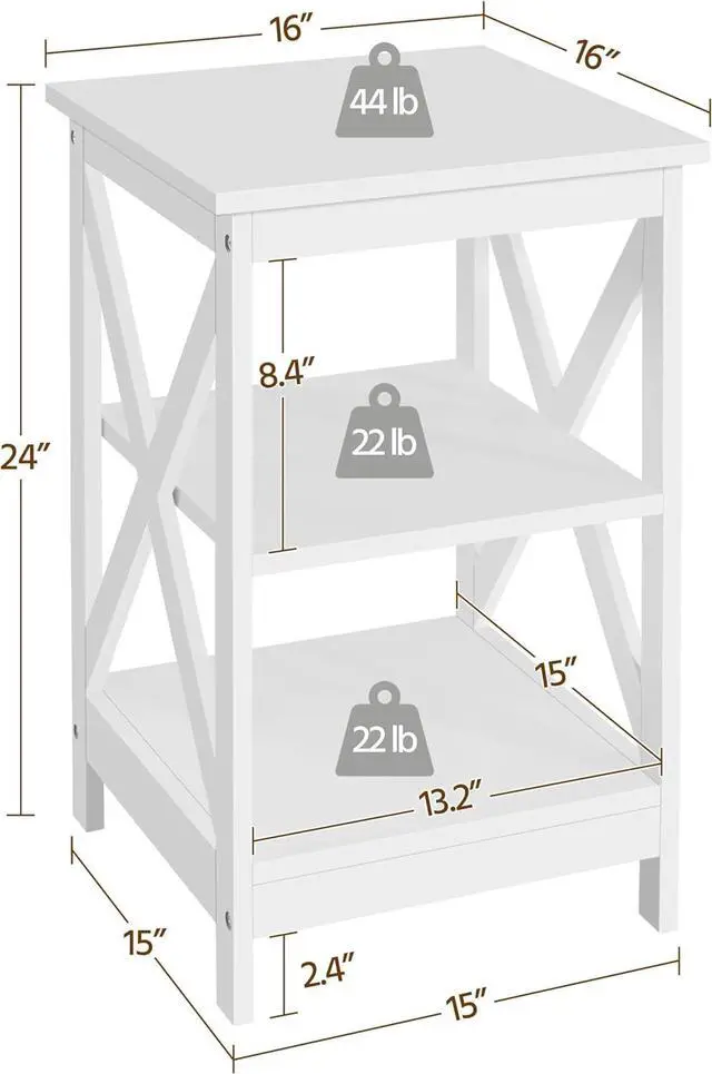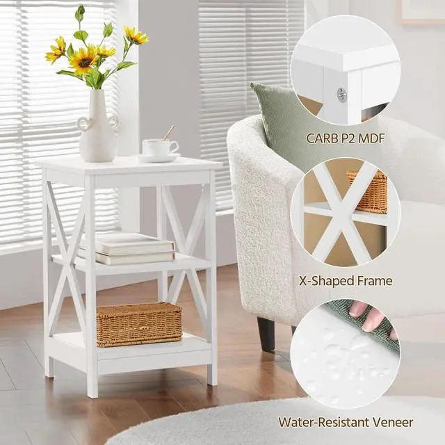 Decent Storage Space: This three-tiered side table offers practical storage for essentials. The spacious top allows you to keep a lamp or the remote control, phone, or eyeglasses close at hand. The two open shelves can be used to store books, magazines, storage baskets, or ornaments