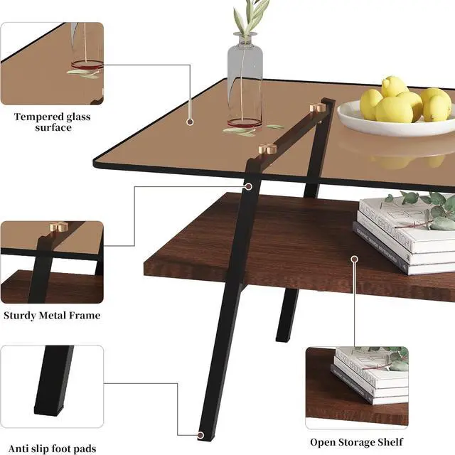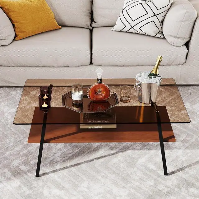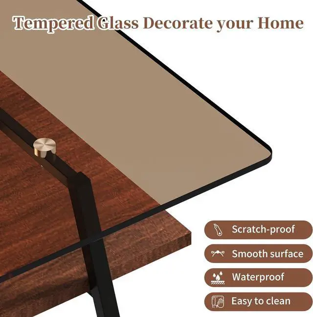 2-shelf design: Our 2-level rectangular glass coffee table meets your storage needs. Maximize storage without affecting space, providing top and bottom layers