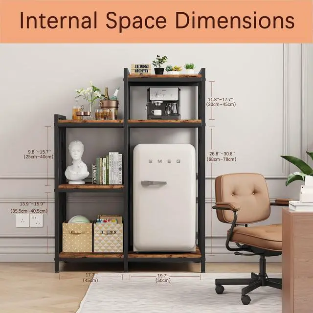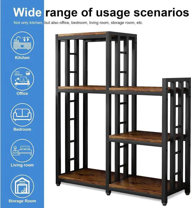Ample storage space: With multiple shelves and compartments, this kitchen storage rack provides plenty of space to organize and store a variety of kitchen essentials such as POTS, pans, toasters, utensils, and even small appliances. Keep your kitchen clean and clutter free.