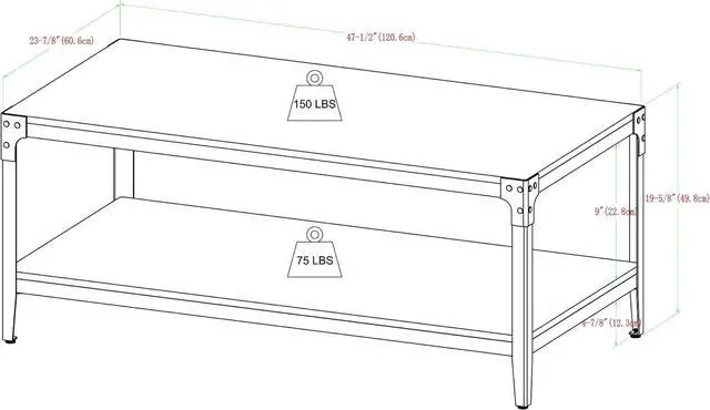 Top surface supports up to 75 Ibs. and bottom tier supports up to 75 Ibs.