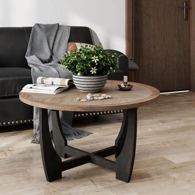 This round table stuns with a round silhouette with a smooth, thick edge top resting delectably on four graceful curved shaped legs, the durable wooden base is joined in a crisscross shape, creating a sturdy frame with clean lines and maximum stability.