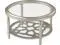 Minimalism Design: The elegant glass top round coffee table surface adds further luxury to the bright champagne finish. A decorative and functional lower shelf features a floral-geometric cutout pattern, and also serves to strengthen and stabilize the table' s four tapered and sculpted legs lathed from solid pine.