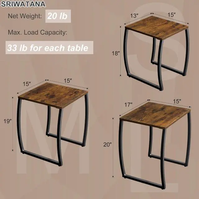 Space-saving Nesting Tables - You can distribute these end tables throughout the room individually for easy-access drinks and snacks, or stack them together to save space.