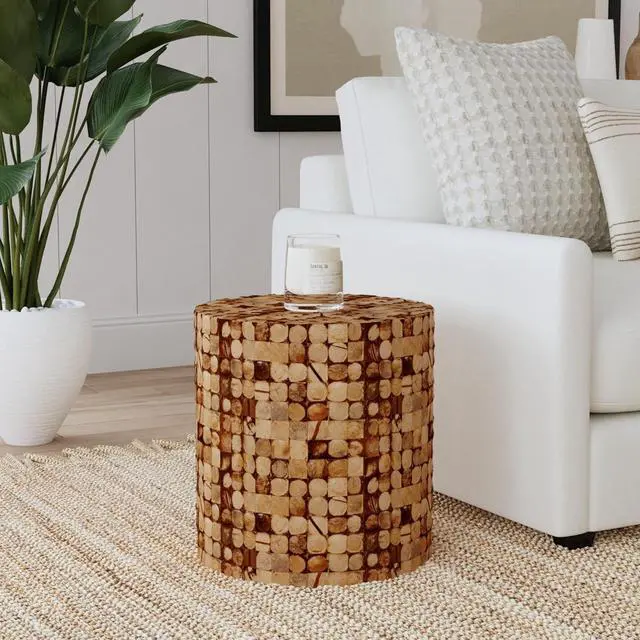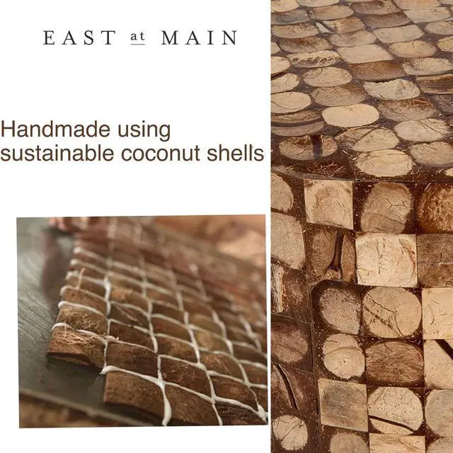 Handcrafted Artistry: This narrow end table is meticulously hand-crafted from sustainably harvested coconut shell pieces, creating a mosaic pattern on natural wood. Each recycled shell piece has a distinct character, giving this side table a unique, organic look that stands out in any space.