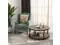 Imitation Wood Grain Surface---The distressed wood grain PVC veneer finish has the look of being weathered and old, giving it texture and a rustic, homey appeal for our coffee table. Also, this round table is scratch-resistant, waterproof and easy to clean. No paint was needed, green non-toxic and Eco-friendly.