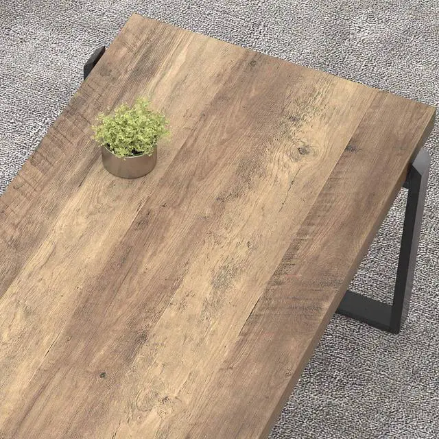 Modern Coffee Table: Add a touch of elegance to your living room with this coffee table featuring a rustic oak wood grain surface and a black metal frame. Its refined design effortlessly complements modern, industrial, retro, and contemporary interiors.