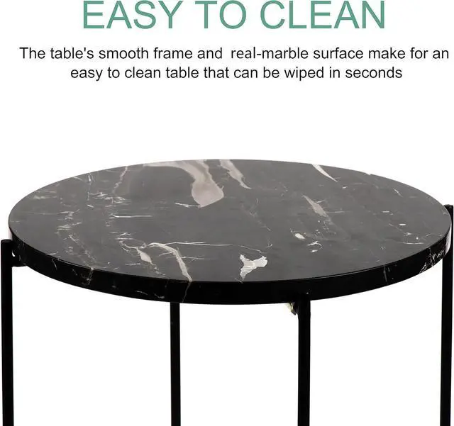 Metal frame table legs, the table top is marble, waterproof, wear-resistant and easy to clean, the overall weight is light and easy to move.
