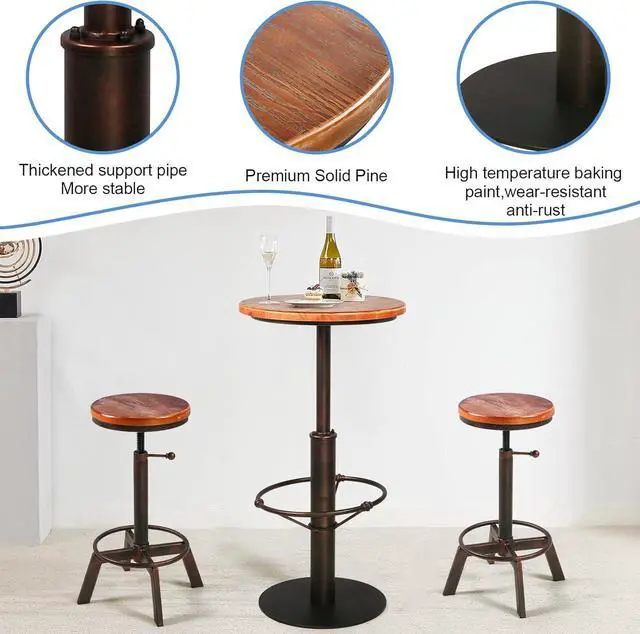 [Industrial Rustic Design] Smooth copper steel body, and a sturdy, solid standing base reflects the design aesthetics of industrial machinery; Brown wooden tablet op with natural wood grain, bringing a strong feeling of vintage style. This pub table is perfect for home use, as well as bar, coffee shop, or restaurant usage with its stylish design and durability it can easily fit into any decor and last for years to come.