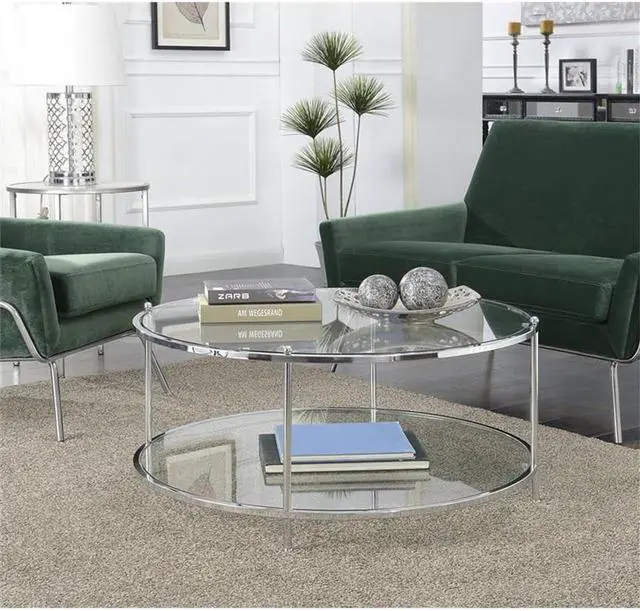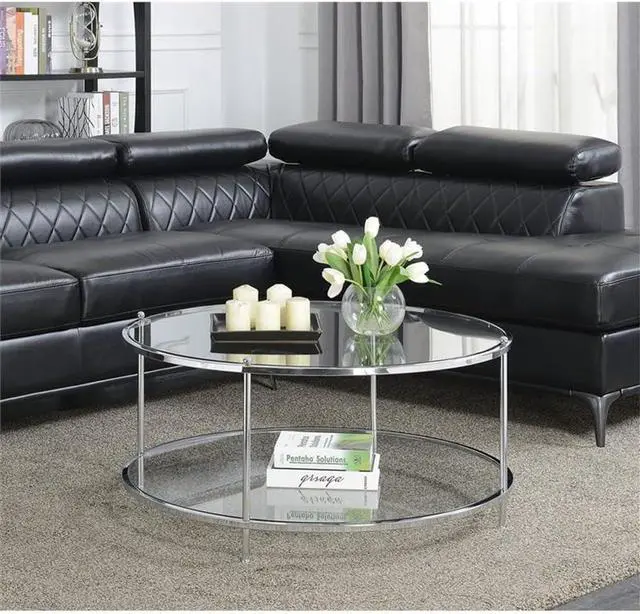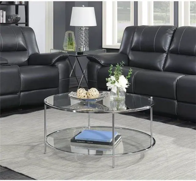 Crafted from clear tempered glass and chrome metal tube