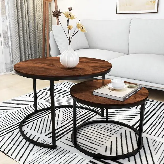[Product Dimension] Nesting coffee tables include a large table ( 27.36 x H 19.09 inch) and a small table ( 19.49 x H 13.98 inch). The small table can be placed under the big table to save space when not in use.