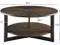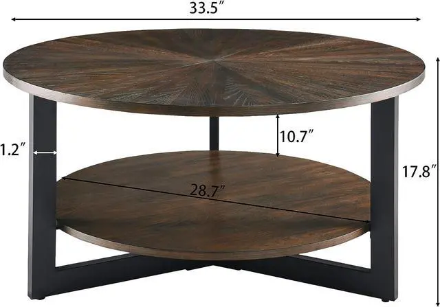 ENOUGH STORAGE COFFEE TABLE: Round coffee table features 2-tier of shelf for display. The round table top is 33.5 Dia x 17.8H, which provides spacious space for living room, The dia of bottom shelf is 28.9, gives you extra space to store magazines and toys, and make your room tidy and neat. And also, this distinctive design provides highlights for your home.