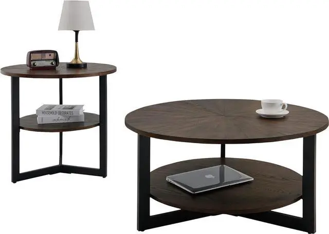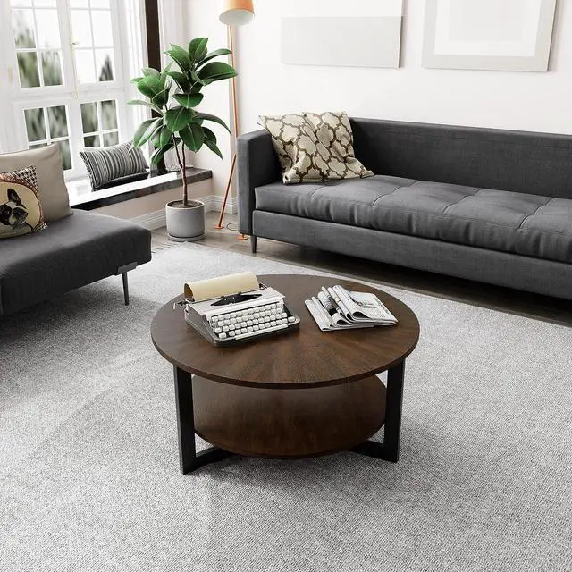 STURDY AND STABLE LIVING ROOM TABLE: Made of solid wood and durable thick metal leg 2" width. The " Y" shape legs make this circular coffee table durable enough. Stable to support stuff on the table(Loading