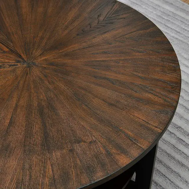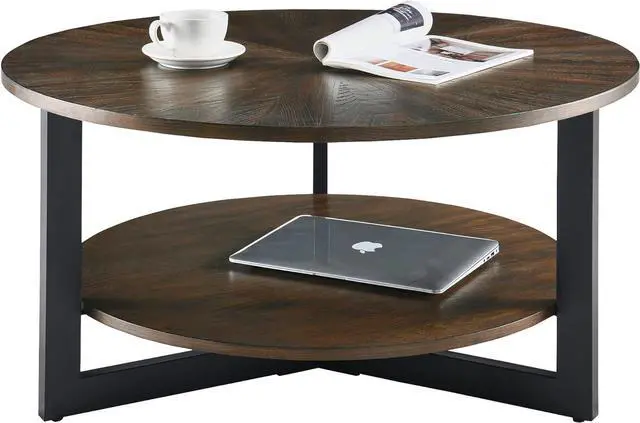 COUNTRY STYLE ROUND COFFEE TABLE: Handmade solid wood splicing panels with rustic brown surface and black metal legs, Vanrohe circular coffee table can match well rustic style furniture and room. Fits well with your personal taste and interior decor. No matter your living room is simple or luxury, it is always best choice.
