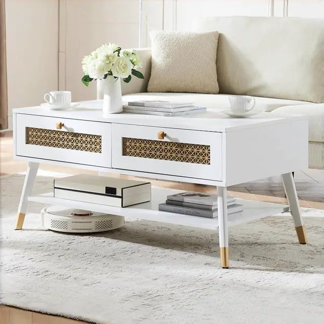 Made of High Quality Materials: This mid-century coffee table is made of high-quality engineered wood with the addition of exquisite metal mesh decorated drawers. Built to last and can withstand daily use, stand the test of time. Enough to support different items such as coffee, tea, magazines, enjoy leisure time in the living room freely