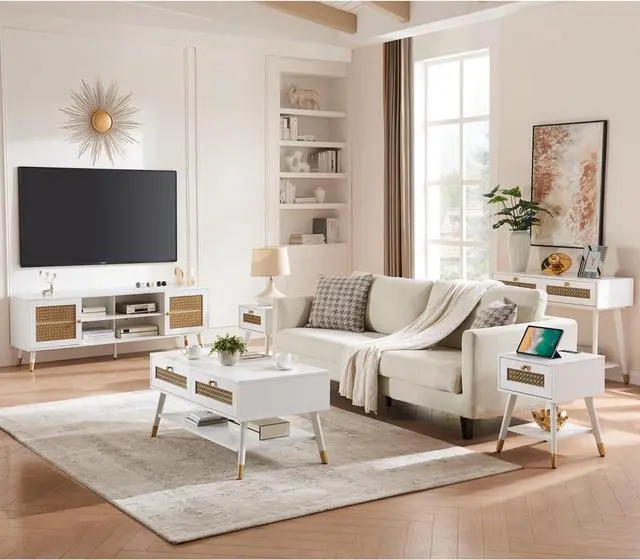 Mid Century Modern Design: This wood coffee table blends a vintage wood exterior with gold metal mesh drawers, suitable for mid century modern and boho styles. Every detail was well designed to blend modern and traditional elements to add a unique charm to your home decor and complete your home entertainment experience.