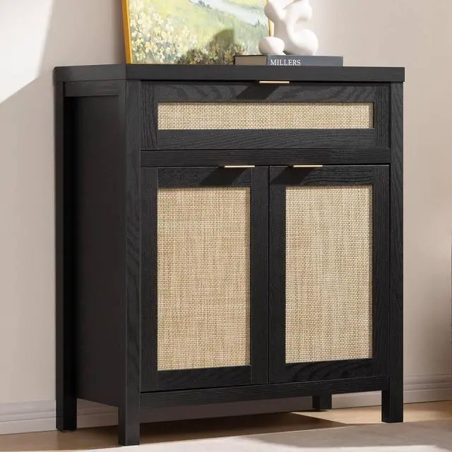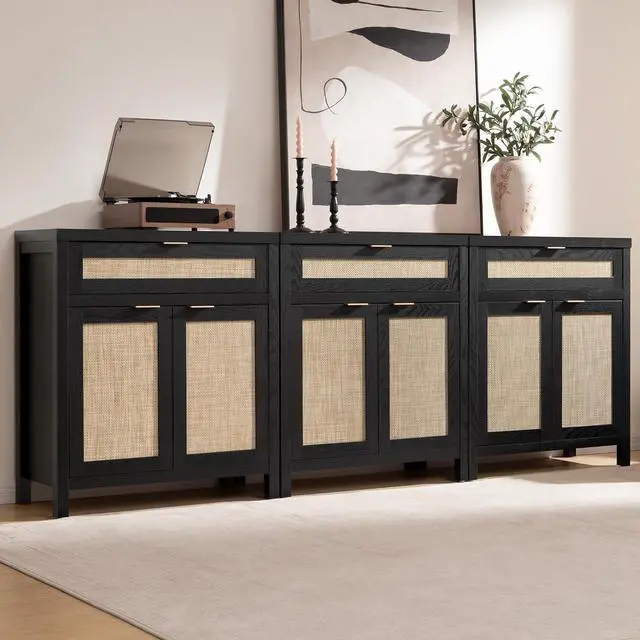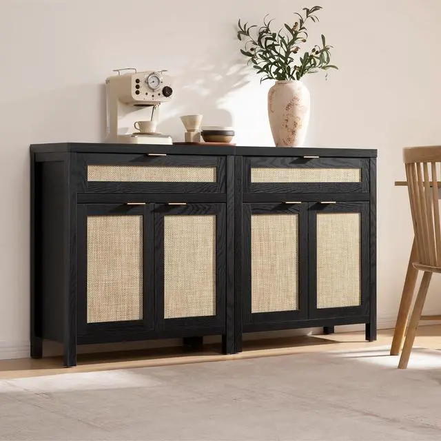 Large and Flexible StorageWith spacious rattan cabinet and drawer, this buffet cabinet offers ample storage space for dishes and silverware. The adjustable shelf allows you to customize the interior space to suit your storage needs perfectly.