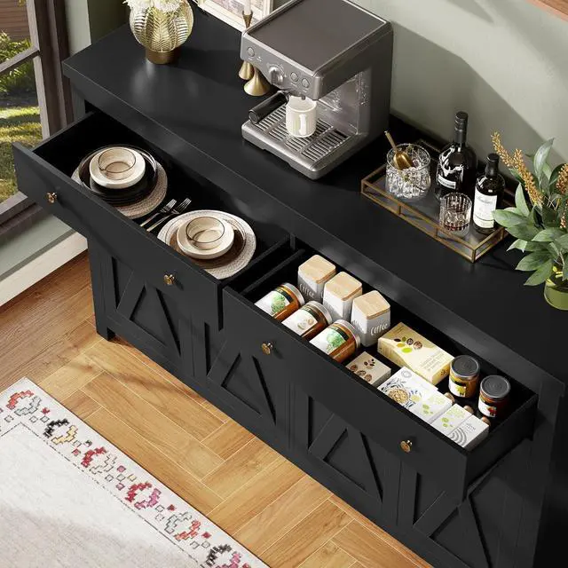 For More Convenience--With smooth-running drawers and metal handles, your items can be easily stored or taken out. Quality material offers this farmhouse buffet cabinet a nice touch. And metal anti-toppling anchor, you can rest assured to have this kitchen cabinet.