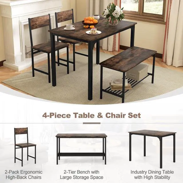 Dining Table Set for 4: Includes a spacious table, 2 high-back chairs & 2-person bench, this modern dining table set allows 4 persons to have a small get-together for chatting & eating together. Ergonomic design and large sitting seat ensure comfortable sitting experience.