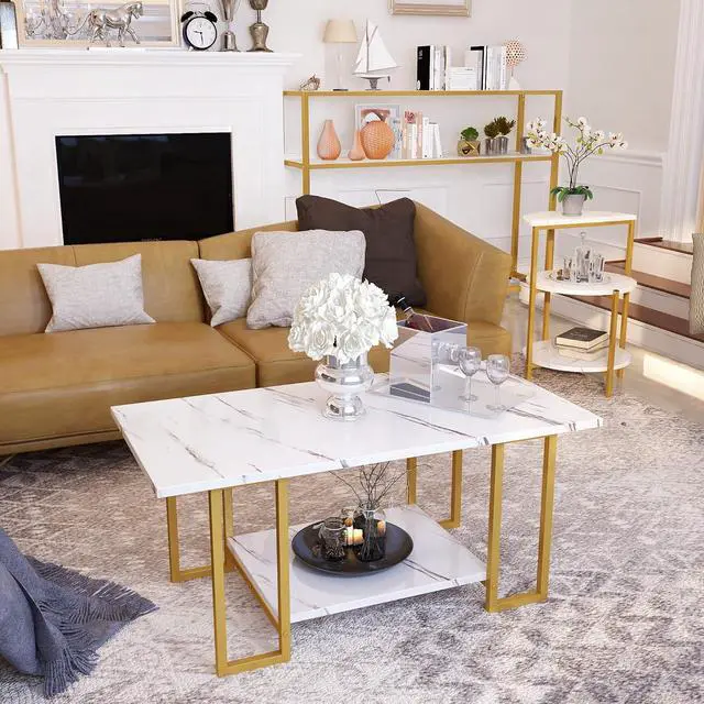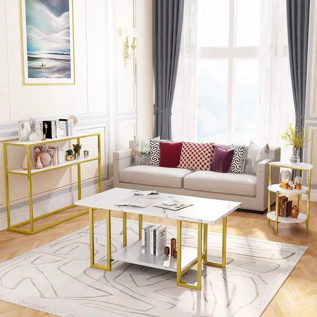 3-PieceComes with a Marble finish Rectangle coffee table, a side table and a console/entryway table, which is practical but also creates a strong high class atmosphere.