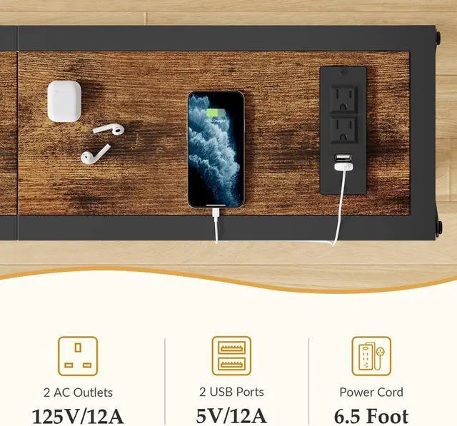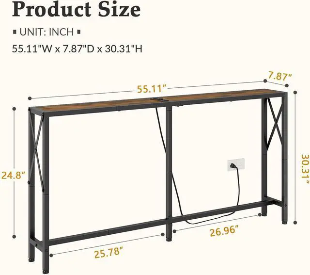 Sofa Table With Charging Station: We know what you need, the sofa table is equipped with 2 outlets, 2 USB ports and 78-inch power cord. In addition, you can place the power strip where you like by adjusting the tabletop section. Let your mobile phone, laptop, lamp and other electronic devices charge in an orderly manner