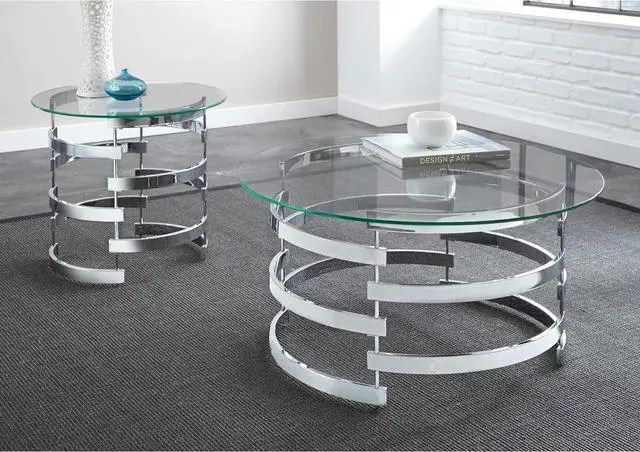 Constructed of metal and glass Contemporary design featuring round chrome plated base Design compliments most modern decors Chrome Base Tables feature 12mm tempered glass tops