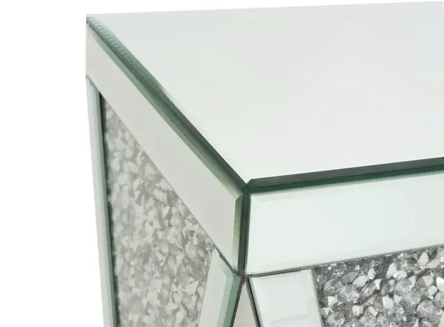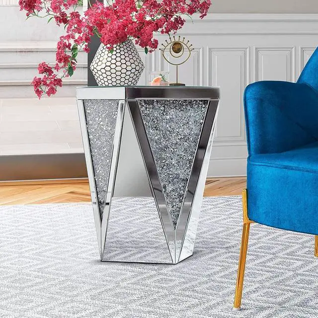 High quality This mirrored side table is made of high -quality silver mirror and solid MDF. The crystal inlaid on the side is shining and looks very high -end. It will definitely be praised and envied by family and friends.