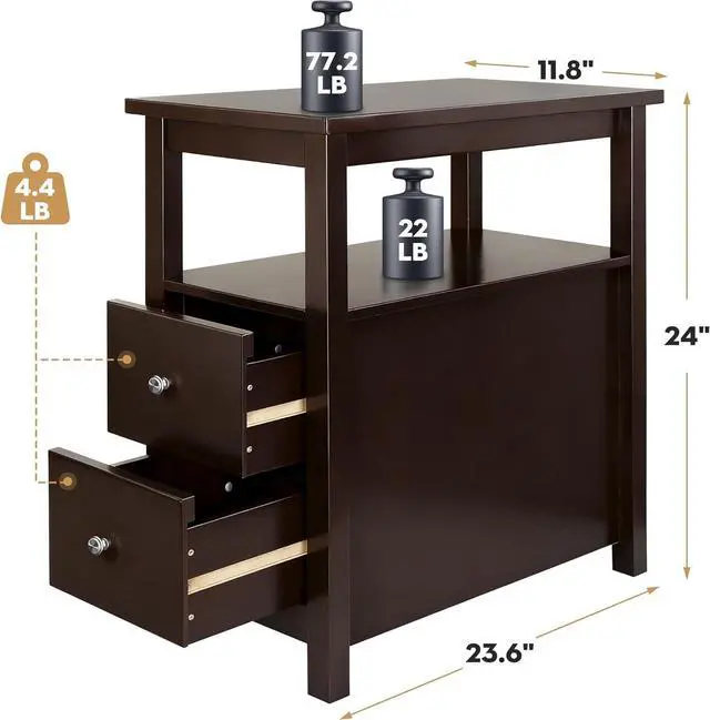 • Esppesso End Table : The small side table features black finish, vantage handles, rural style. storage drawers with smooth wood side rails, all reflected the end tables elegant and simple natural design. The waterproof and smooth table surface is easy to clean