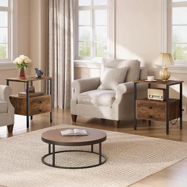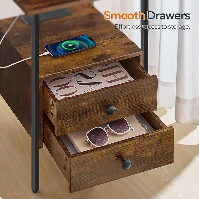 Versatile Side Table: The end table with 2 drawers and 2 open shelves gives you plenty of storage space. 2 drawers under the tabletop will help you organize remotes, snacks, medication, game controllers and phone charger cables. 2 open shelves are provided to put phone, vases and books etc. Its great for your living room, bedroom, home office and small spaces