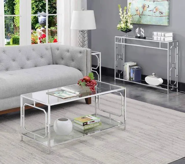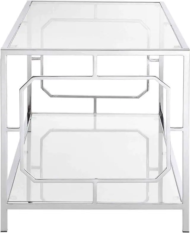 Part of the Omega collection by Convenience Concepts Sleek modern contemporary style Crafted from clear tempered Glass and Chromed metal Quick and easy Set up (L) 42 in. X (W) 18 in. X (H) 18 in.