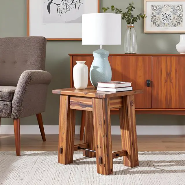 DURABILITY AND CRAFTSMANSHIP This side table is durable and well-constructed; crafted with premium quality materials, such as industrial metal and natural wood, which comes with real knots, cracks and even rough-hewn edges making it a unique statement piece.