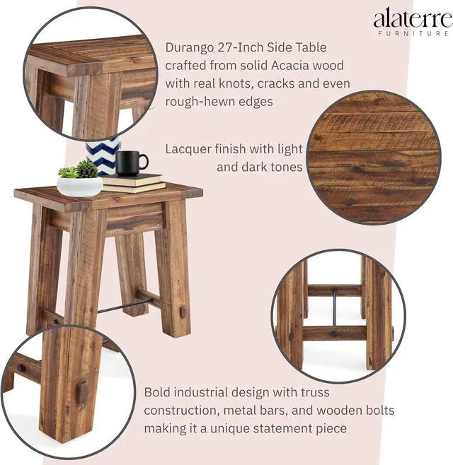 EASY ASSEMBLY AND STYLISH Lightweight and portable, with the simple plug and play assembly, this Alaterre Furniture Durango End Table will be great in any room or space, adding a grace and style to your quirky décor.