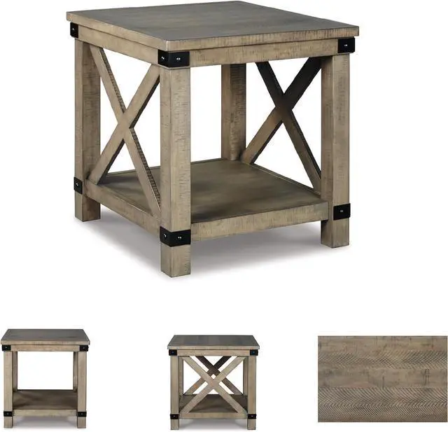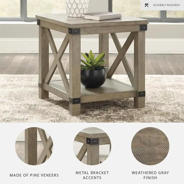 HANDSOMELY CRAFTED: Table is made of pine veneers, pine wood and engineered wood. Designed with crossbuck details and metal bracket accents