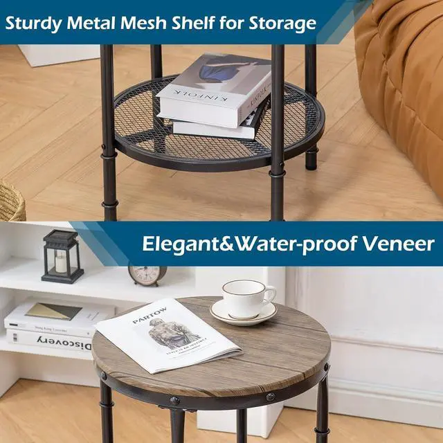 Sturdy Construction: Applied the sturdy metal for the body/leg/mesh shelf and the water-proof wooden veneer for the side tabletop, it is a definitely lasting piece that allows you to use it for a long time