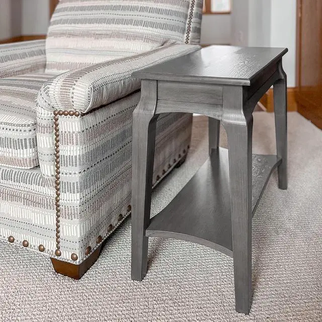Stratus Solid Wood Narrow Side End Table with Shelf, Smoke Gray, Perfect for Living Rooms, Bedrooms, and Small Spaces Leick Home, 22005-GR