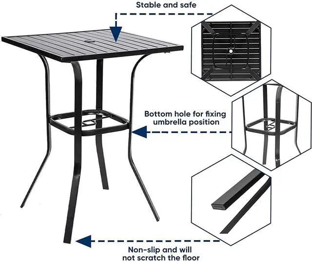 Sturdy construction Selected anti-rust coated steel frame and special slatted surface makes it textured, solid construction ensure years of service life, no special maintenance requiredthe outdoor bar height table is able to withstand exposure to weather without rust, allow its beauty to stay over the years.